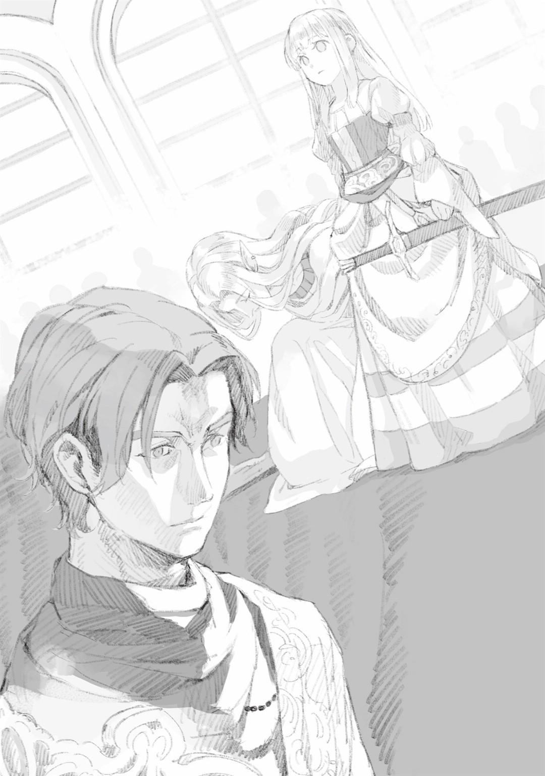 The murmur of the people in the Great Hall diminished as they noticed that Leticia, who had previously remained motionless in her seat like a doll, quickly stood up. Raul, who had been talking to the Bishop on the platform, also noticed the change in the people and turned around. As Leticia stood up and took slow steps forward, she drew her sword at her waist with a quick and fluid gesture.